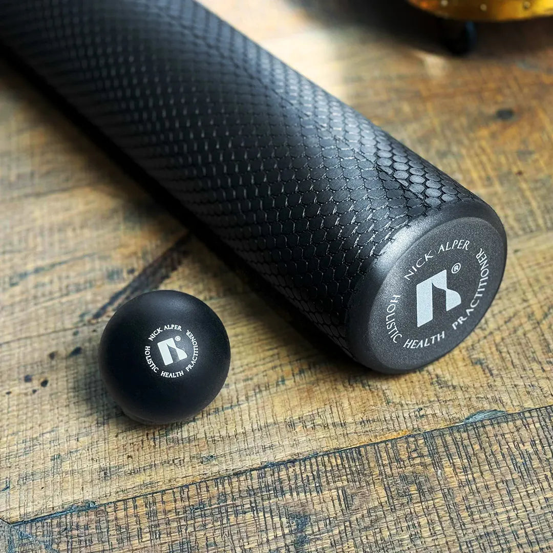 De Release & Align Set bestaat uit een speciaal ontworpen foamroller en een stevige lacrossebal. Samen helpen ze spanning in spieren en bindweefsel los te laten, je houding te verbeteren en herstel te bevorderen. De set is ontwikkeld om lichaam en geest in balans te brengen — eenvoudig, effectief en duurzaam.